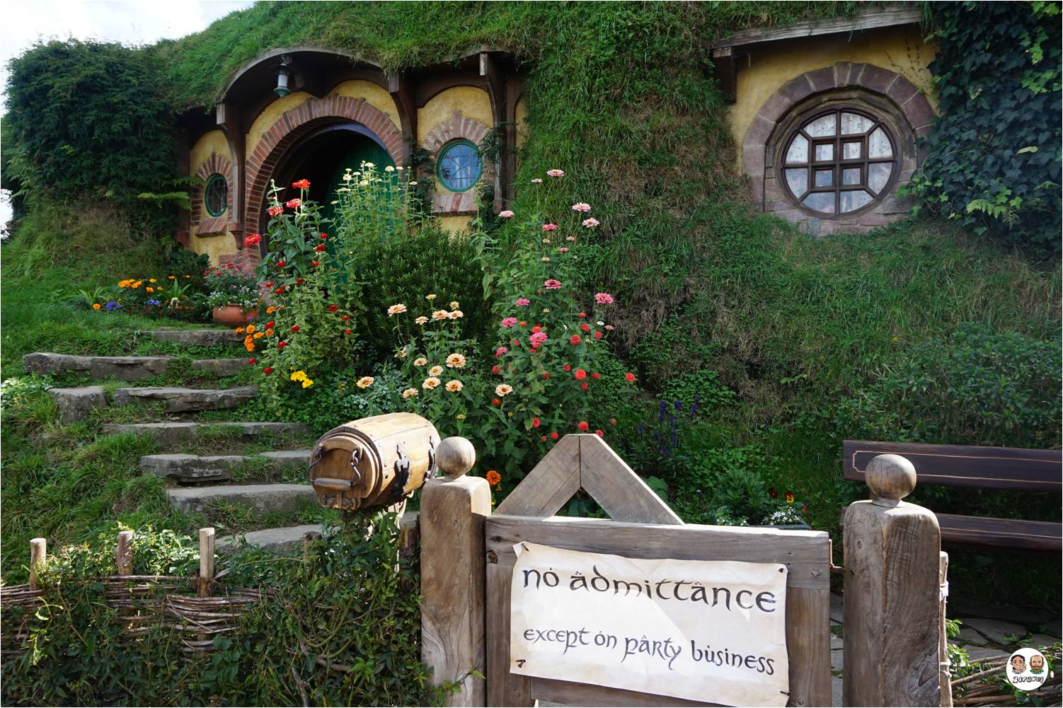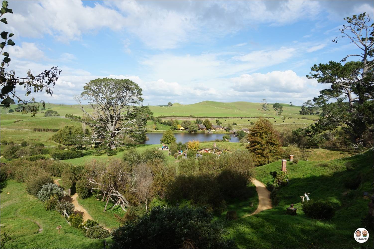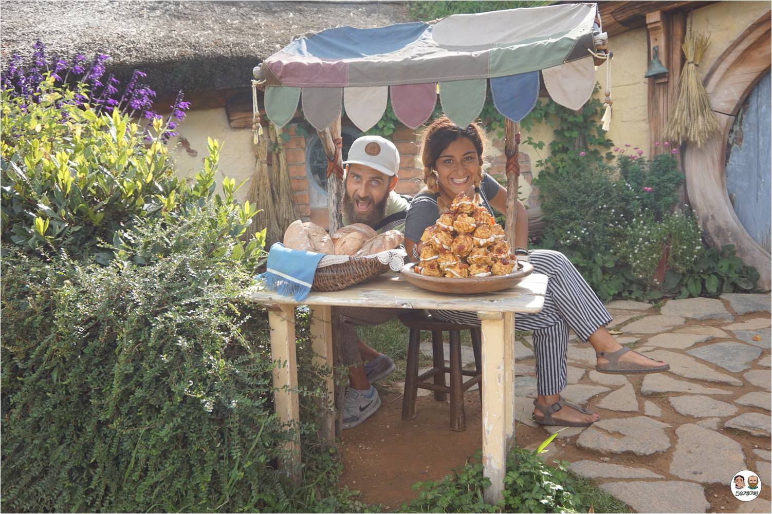 Ma è nel pomeriggio che abbiamo visitato il luogo che tanto attendevamo… siamo andati nella Contea! A casa dei Baggins, per intenderci 😉 Hobbiton è il luogo dove è stata girata la trilogia de lo Hobbit e del Signore degli Anelli. Si tratta di una verdissima farm nella quale è stato deciso di mantenere inalterato il set del lo Hobbit (dopo il Signore degli Anelli avevano “smontato” tutto, ma durante le riprese de lo Hobbit hanno deciso di realizzare delle strutture permanenti per rendere la “Contea” un’attrazione turistica). Lo ammettiamo, siamo andati a visitare la “Contea” vestiti il stile Hobbit (forse un po’ nerd?). A nostro parere la visita a Hobbiton è consigliata anche a chi non conosce i film, il paesaggio è incantevole, tra i migliori che abbiamo visto in Nuova Zelanda.