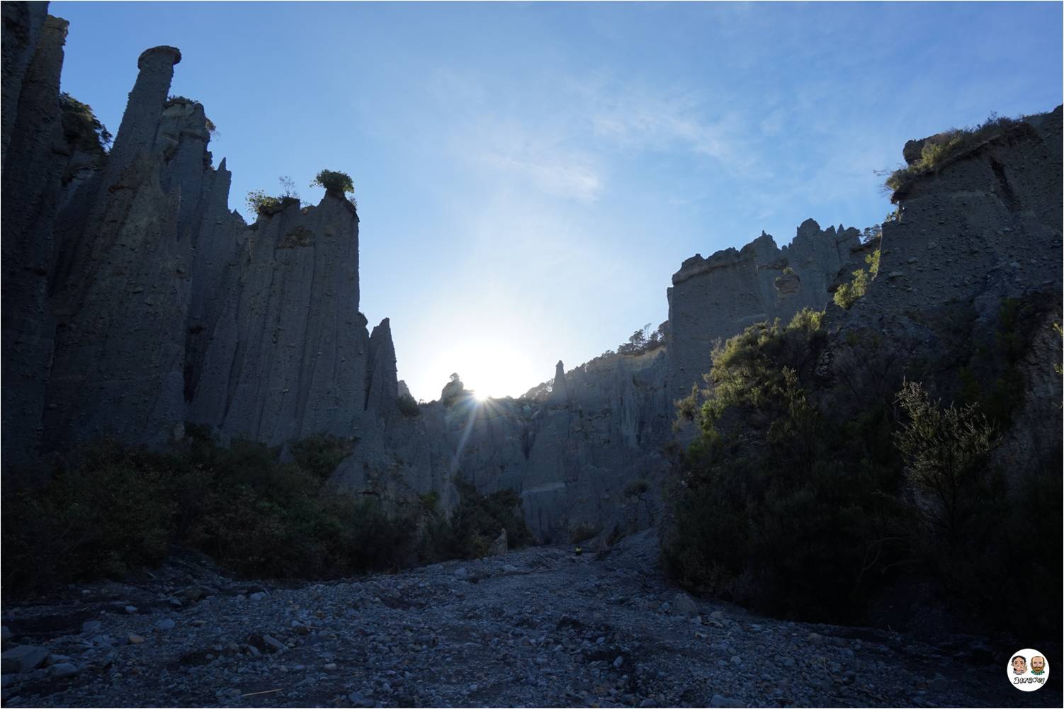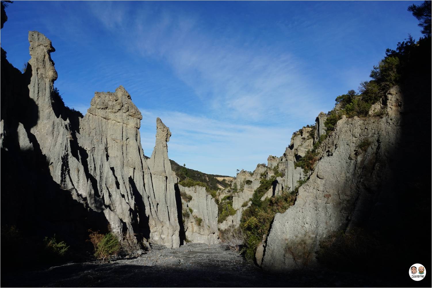 La noche la volvimos a pasar en un lago, y aquí vimos uno de los mejores cielos nocturnos que hemos visto en nuestras vidas (veréis la foto que hicimos a duras penas). Al día siguiente fuimos a hacer otro pequeño trekking para visitar Putangirua Pinnacles, un parque nacional donde se pueden ver unos gigantescos peñascos, algunos de ellos bastante peculiares ya que parecen cabezas de monos! Un auténtico misterio…
